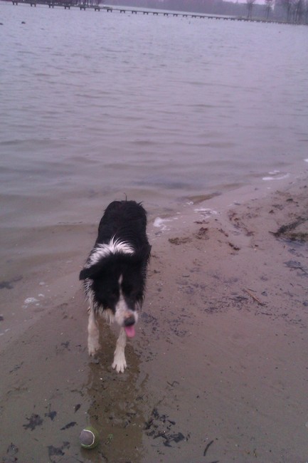 Honden foto's > Lavina > zo'n bal met zand is niet lekker