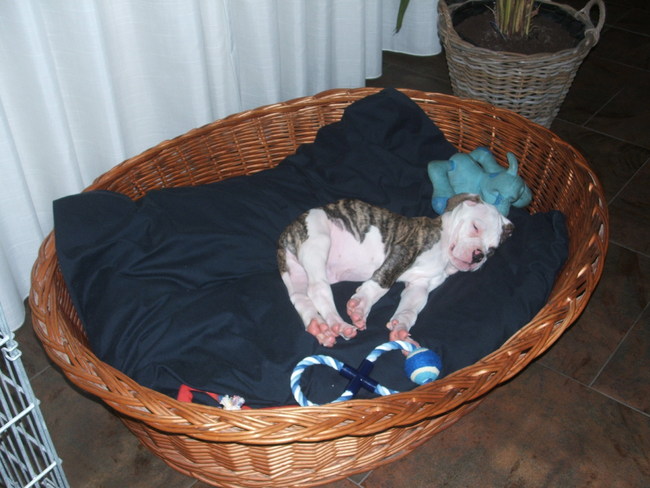 Honden foto's > jenny > heerlijk slapen in zijn super grote mand