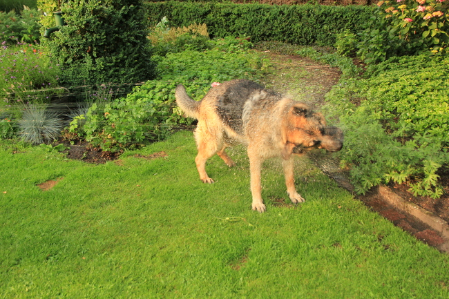 Honden foto's > Inge & Danger > Lekker nat!