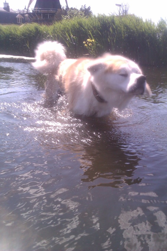 Honden foto's > Lavina > Afkoelenn en uitschudden in het water, snap nooit hoe het nuttig is??