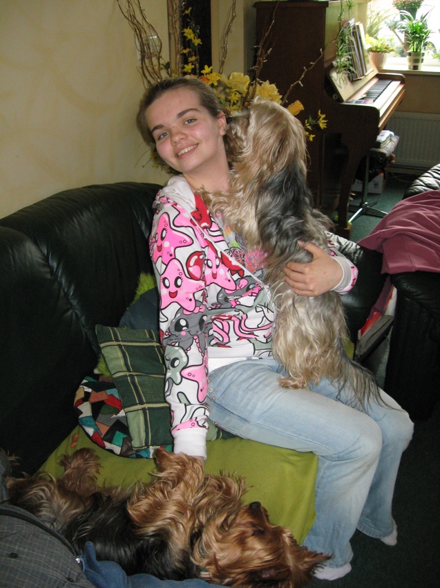Honden foto's > Esther > Als 12-jarige bij oma, gek met de honden.