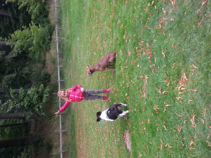 Honden foto's > shirt > Mijn dochter bezig met zit en wachten. ..