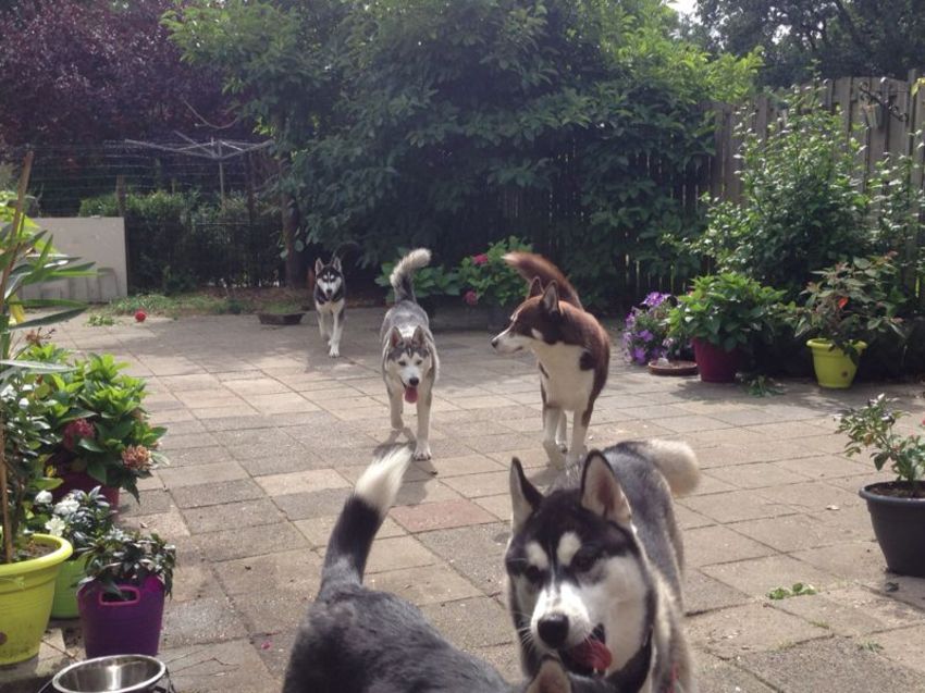 Honden foto's > Deborah, Chula & Bowser > spelen met skaraa