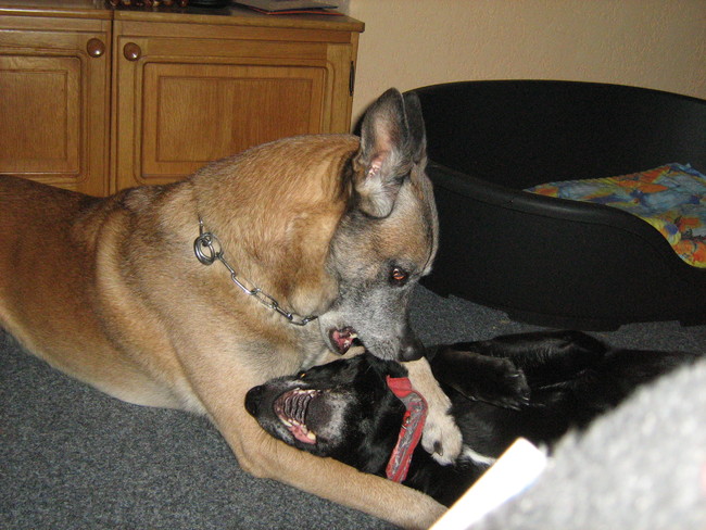 Honden foto's > heike > lekker vechten in woonkamer