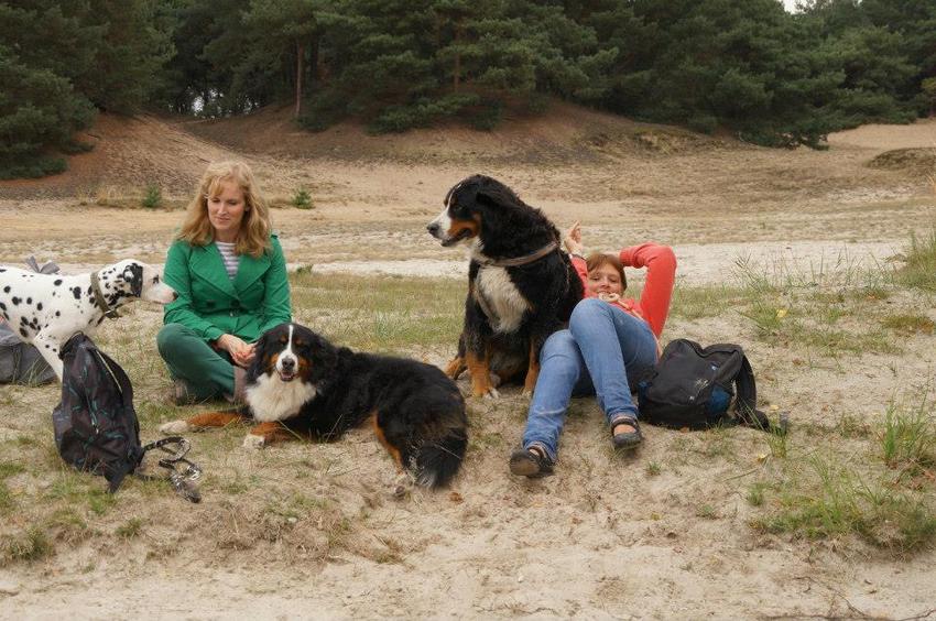 Zitten in het zand van Angie, Jolie †, Sooki en Pipa Skye