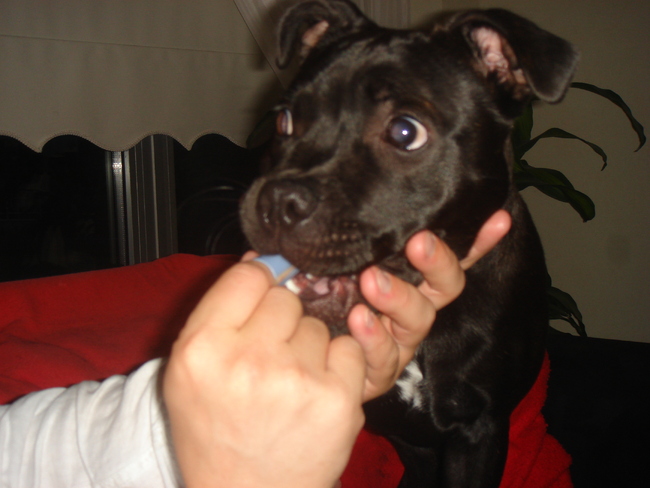 Honden foto's > Sensi & Melissa > Met papa mijn tandjes poetsen
