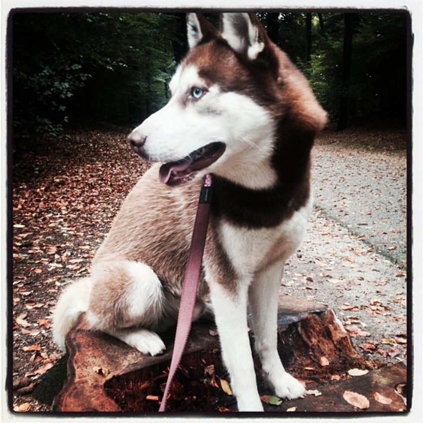 Honden foto's > Jacqueline, de Kids en Juno <3 > Juno op een boomstronk haha hij is wel fotogeniek!