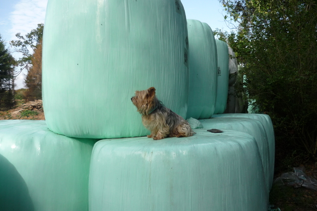 ons fleurtje op een stroobaal aant kijken wa er gebeurt bij de paarde van Marijke