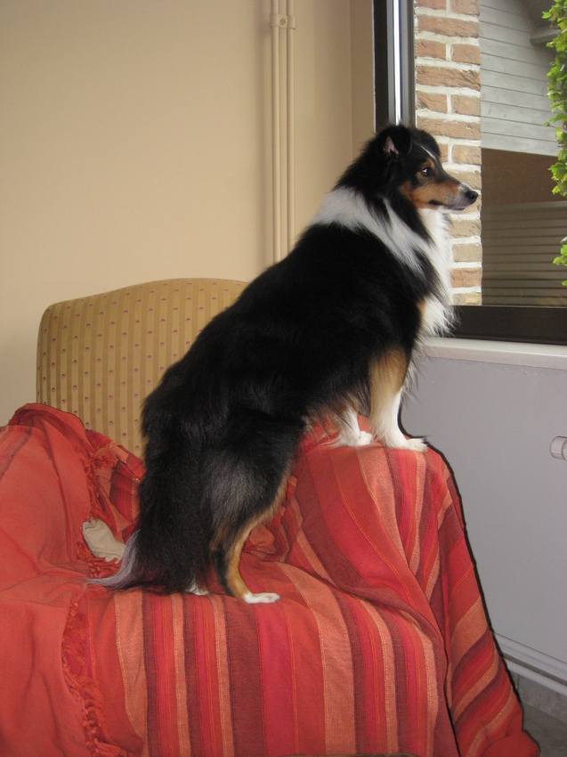 Honden foto's > Kath > door het raam kijken en als ik wat gezien heb naar buiten rennen door mijn hondenluik is 1 van mijn favoriete bezigheden :-)