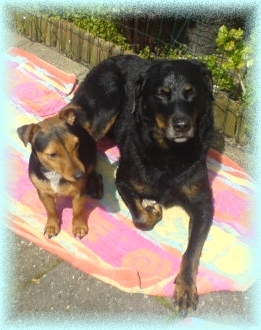 Honden foto's > A Kers > Samen na het douchen drogen op de handdoek!