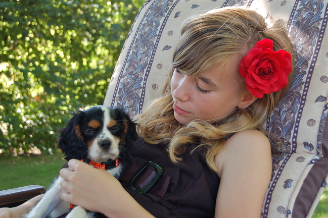 Honden foto's > lesley > Onze dochter Cara met haar hartendiefje!