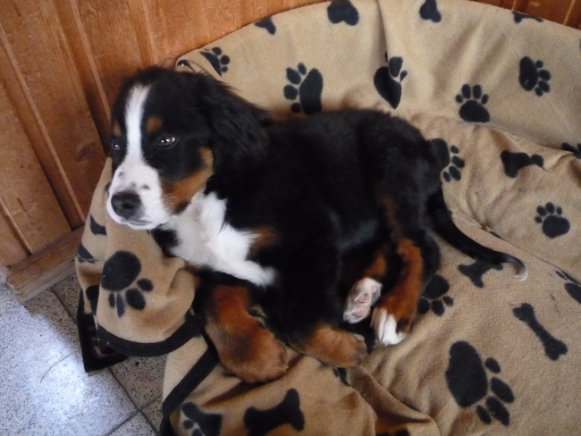 Honden foto's > Caroline G > Mooi in zijn mandje liggen