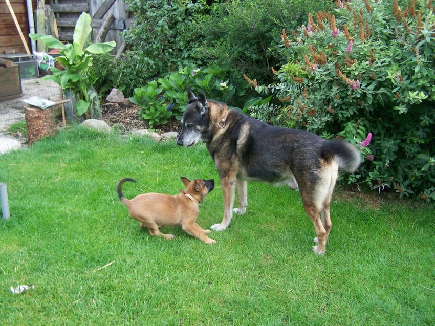 Honden foto's > irene > hier zie je rik tegen Robbie blaffen zo'n klein en al heel wat lef.