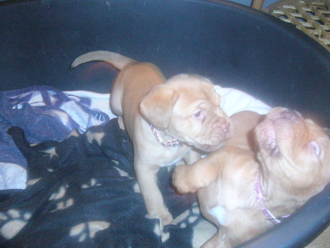 Honden foto's > raymond en ingrid > bo en bikkel 6 weken oud aan het spelen in de mand