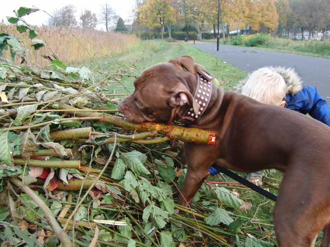 Honden foto's > priscilla & C.S.C > samen in de aanval op een berg takken