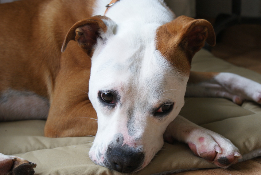 Honden foto's > maarten > dit is gina liggend op haar mat.
