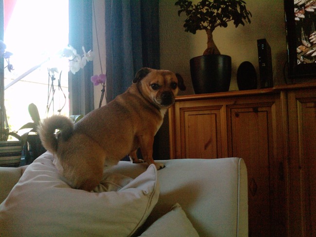 Honden foto's > kim > Hier zit ze graag stiekem als we weg zijn, naar buiten te kijken.