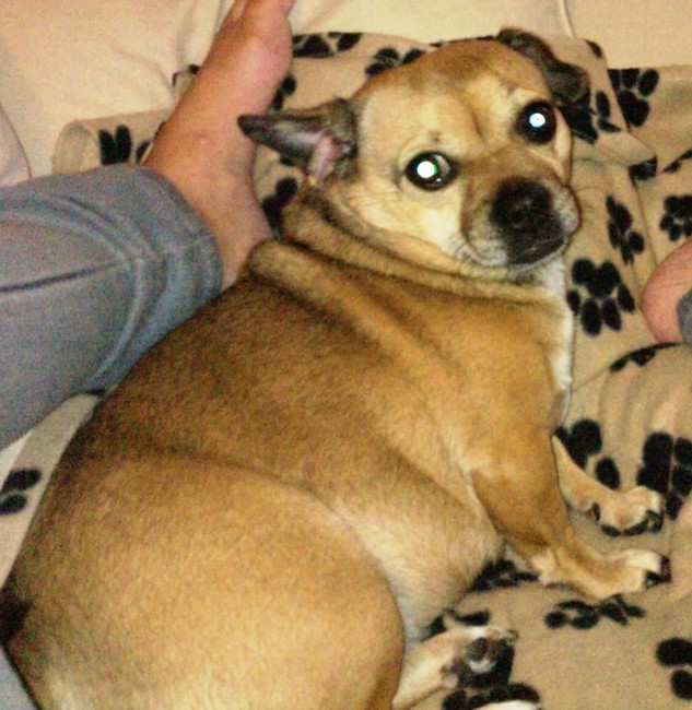 Honden foto's > kim > Heerlijk op de bank maar alleen op haar eigen kleedje.