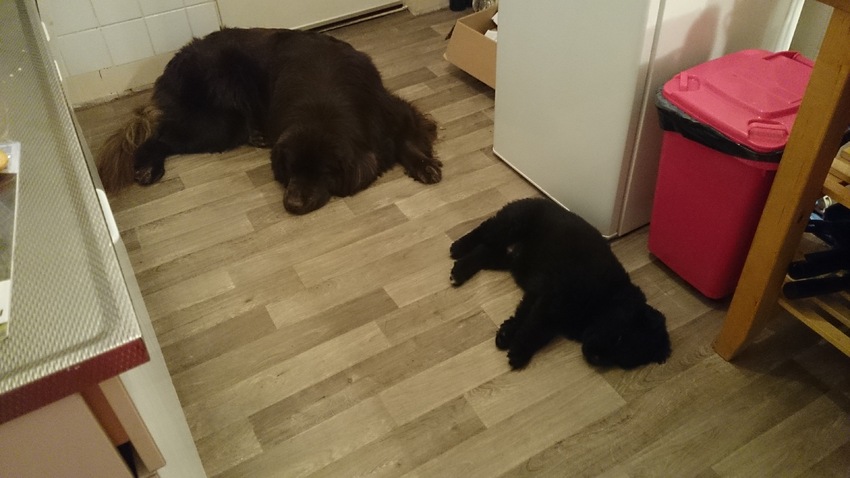 Honden foto's > Anika, Bella&James > De keuken wordt niet meer bezet door 1, maar door 2 obstakels...