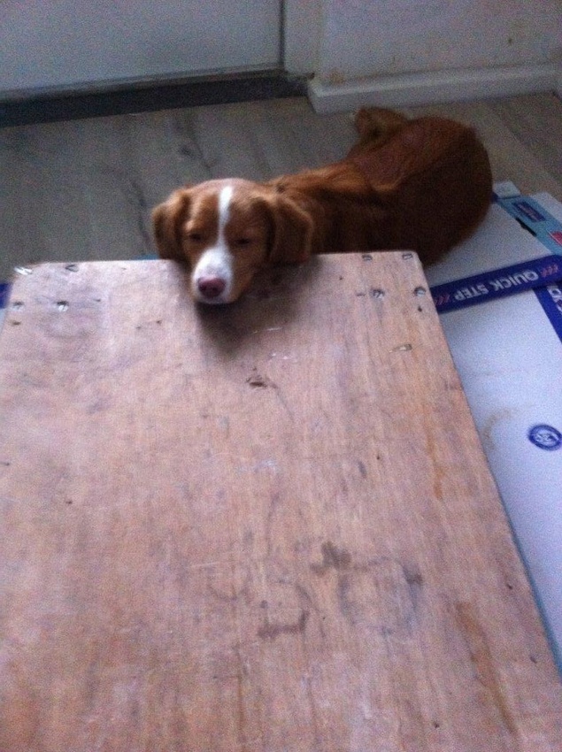 Honden foto's > Sigrid, Sandy, Diva & Nala > Pff van klussen in een nieuw huis word je moe