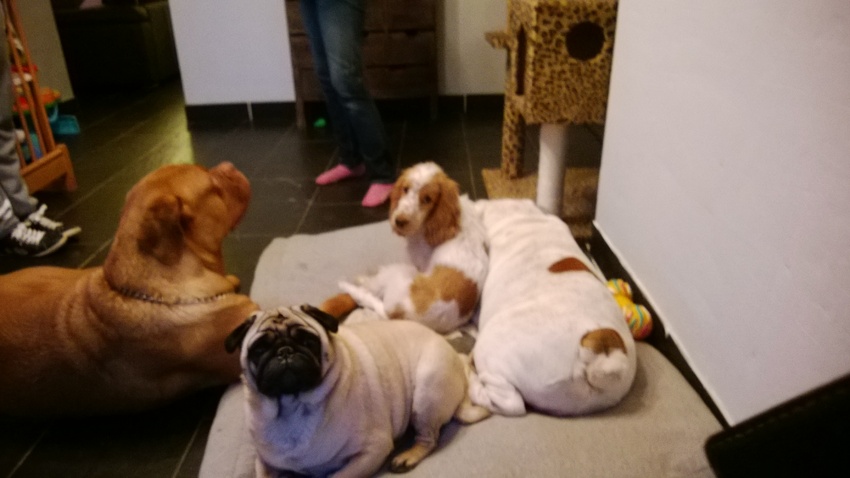 Honden foto's > evy > onze bende een uur nadat yiska bij ons kwam !