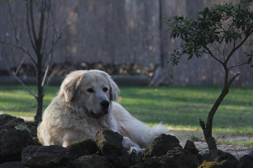 Als het lekker zonnig is, ligt Boris in de schaduw van Desiree