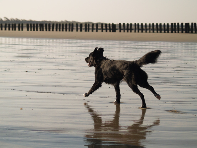 Honden foto's > Judith & Sam & Roos > lekker rennen aan zee
