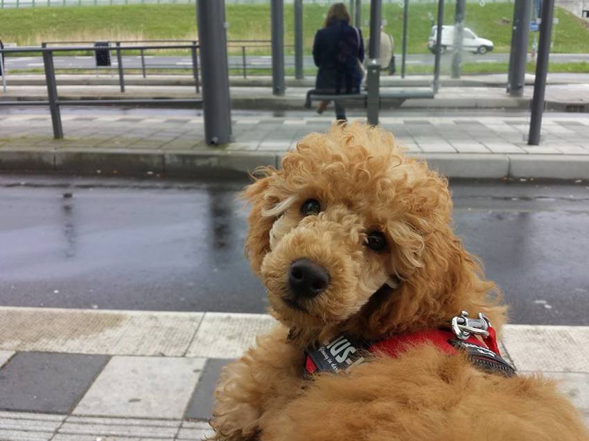 Honden foto's > Inge, baasje van Gina, Flynn en Wobbe > Voor de eerste keer met de bus