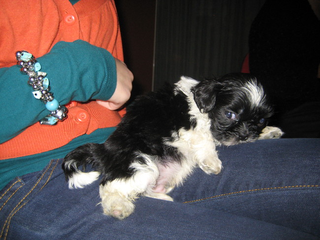 Honden foto's > Caroline Fr > Lekker effe knuffelen op schoot, 5 weken oud