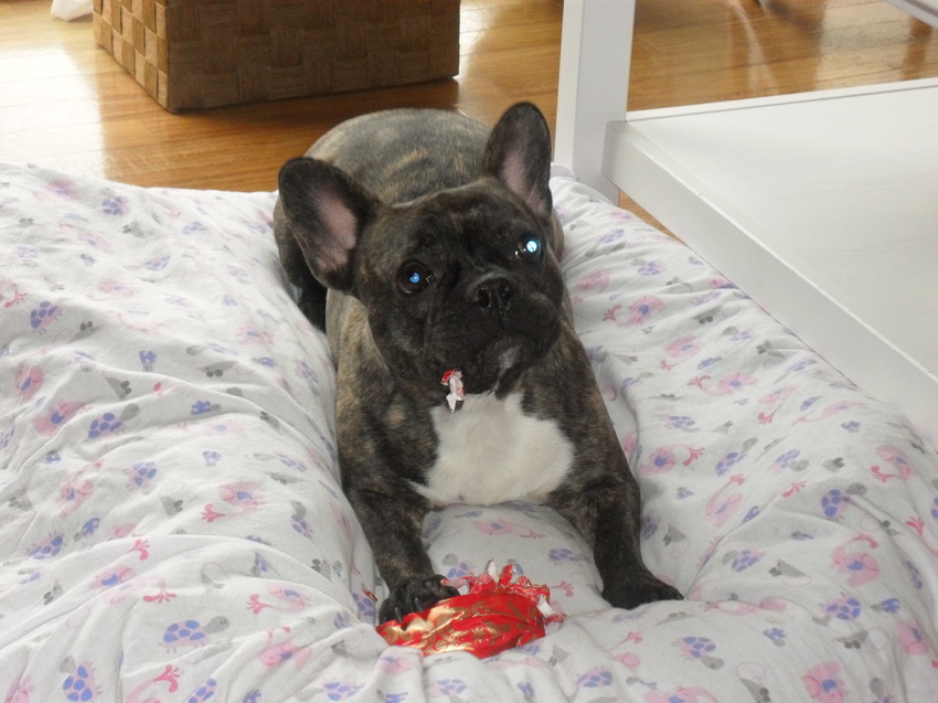 Honden foto's > Gwenn > wat fijn, ze maakt haar eigen cadeautje open! :)