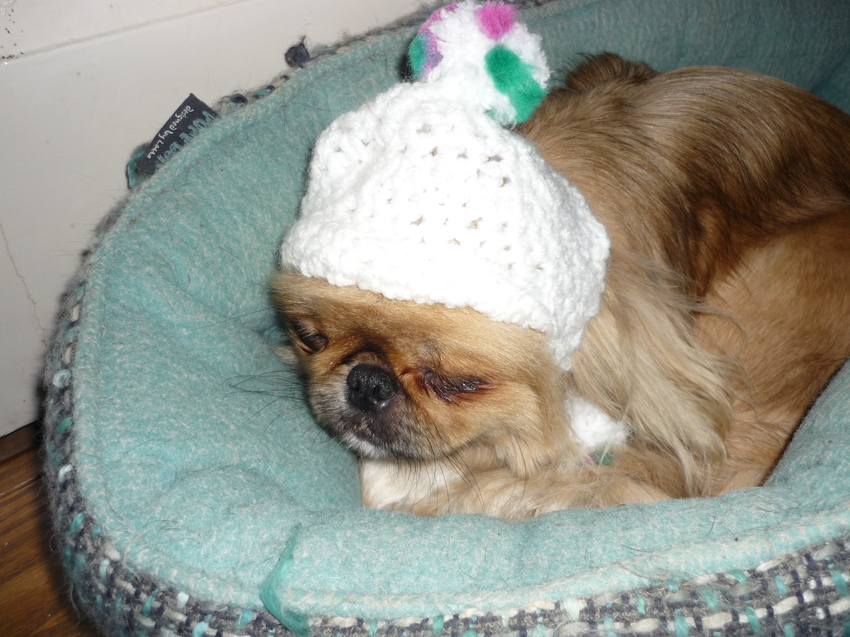 Honden foto's > chico > en dan krijg je ook nog een gebreid mutsje op!!