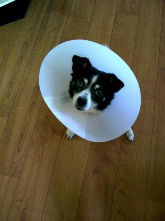 Honden foto's > Myrna > Terry na haar operatie aan wratjes op dr pootje