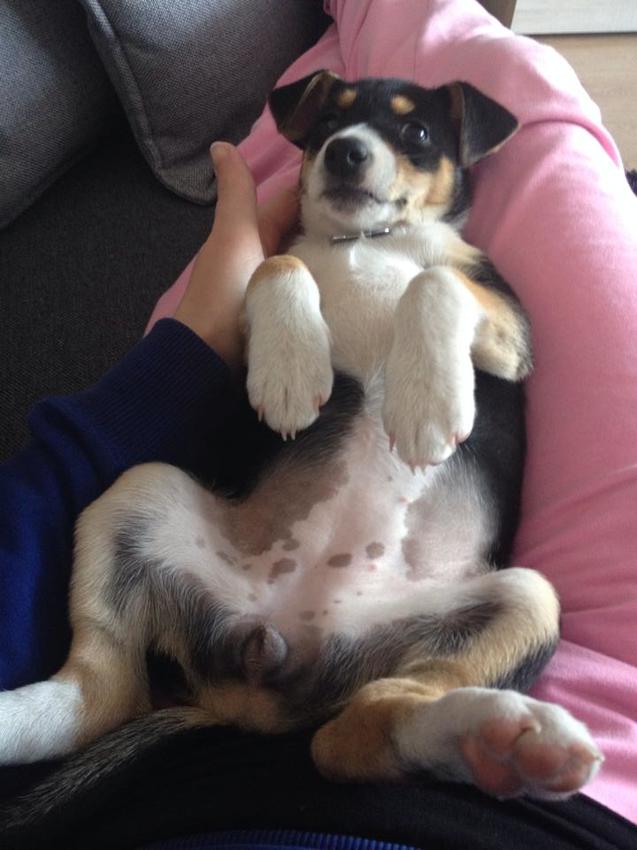 Honden foto's > Myrna > aaa toee... aai me nou op mijn buikje!