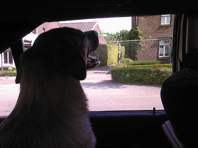 Honden foto's > Alexander Bronneberg > Zelfs met een fris briesje vindt ze het heerlijk in de auto.