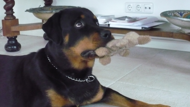 Honden foto's > Djura+Camee > Djura en haar maatje ducky, die al 2 x dicht genaaid moest worden.