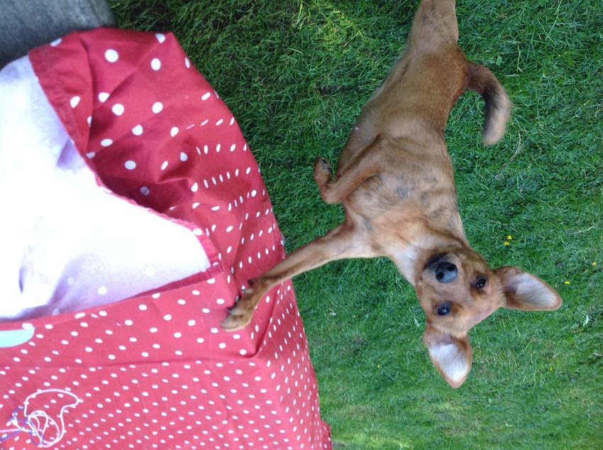 Honden foto's > Helena Van Mulders > Zie eens hoe fier laika de tafelnap tegen houdt