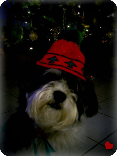 Honden foto's > Laura & Sparky > sparky bij de kerstboom!!