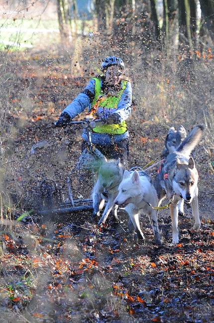 > Even door een diepe kuil. tijdens de Sledehonden wedstrijd afgelopen zaterdag 12-12-2009.