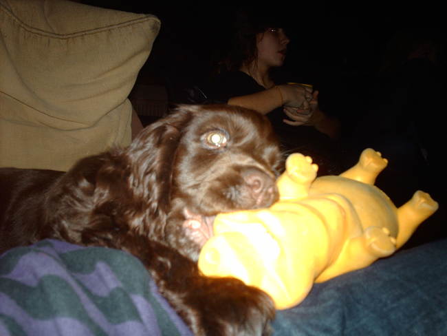 Honden foto's > Laure & Aldo > Ik bijt op mijn speelgoedvarkentje, mijn lieveling!