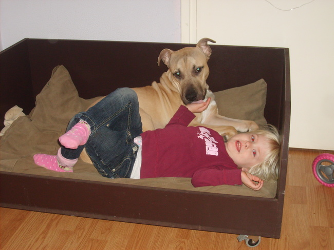 Honden foto's > Ester & Syrah > Samen in de mand haha