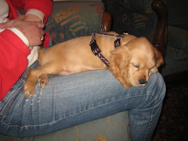 Honden foto's > Kim & Peet met Cooper & Quiero > op schoot lig ik lekker veilig en knus