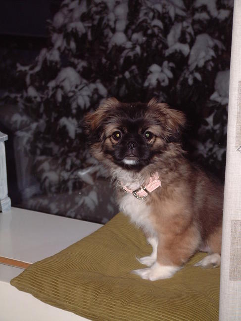 Honden foto's > mimi > ff kontje warmen op de verwarming