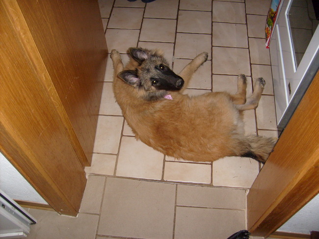 Honden foto's > Jeanine > Zoals je ziet is Hindy een ster in in de weg liggen :D:D
