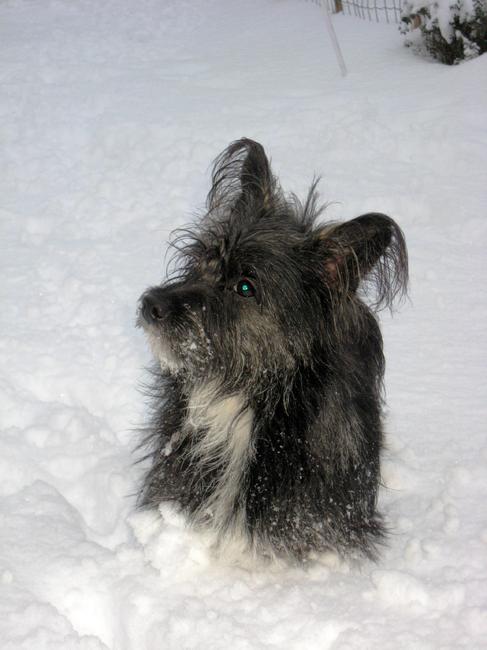 Honden foto's > Bernadette en Boemer > tot aan haar buik in de sneeuw