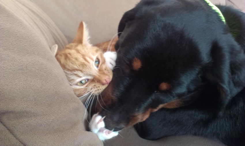 Honden foto's > Nancy en Dino > Lekker spelen met mijn vriend de rode kater Hercules!