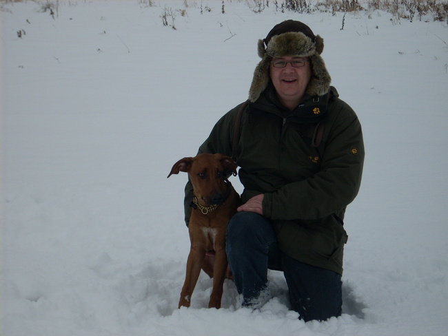 > Samen met mijn baasje in de sneeuw...heerlijk is dat!!!