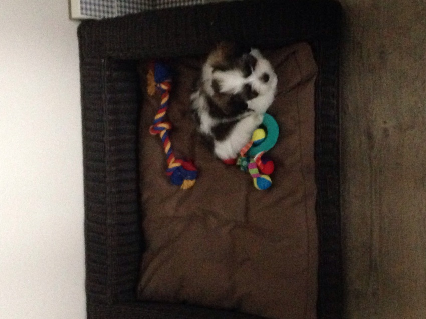 Honden foto's > Mandy, vrouwtje van Bobby! <3 > Nog zo klein in zijn mandje.
