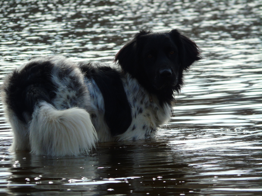 Honden foto's > Sandra, Ozzie (overleden) Iris en Zoë > Ozzie in het water.