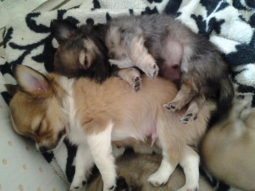 Hun hondje was een paar maanden eerder op een oppas adres verongelukt. Hij was al 12 jaar. Mijn ouders vroegen om hem niet mee naar boven te nemen. Dit had deze vrouw toch gedaan. Daar is mijn ouders hun hondje van het bed gesprongen en natuurlijk een gebroken ruggetje. Wij gaan altijd samen met mijn ouders op vakantie naar italie. Dit nieuws kregen we te horen in de auto toen we in de helft zaten. Terug keren had geen zin volgens de arts. In de eerste plaats wilde mijn moeder nooit nog een hondje. Maar na een paar maanden begon hun gemis. Wij zelf wilde al lang een hond en gingen op zoek. Kwamen bij lieve mensen die een nestje hadden. En kon niet kiezen tussen deze twee. Dus hebben ze beide gekocht. En mijn moeder laten kiezen welke ze graag wilde. Dus dit was het geschenk van hun leven :) van silke