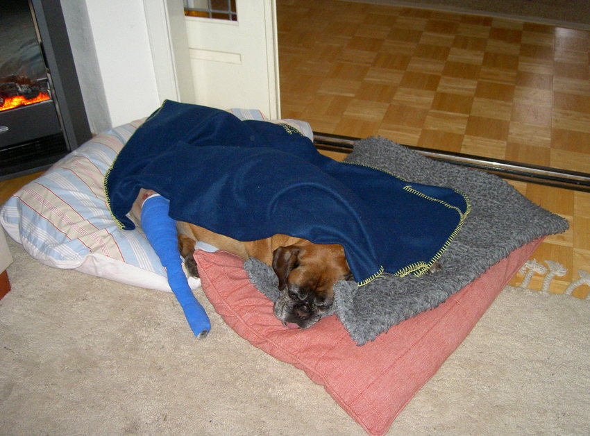 Honden foto's > Annemiek > Mickey vlak na kruisband operatie.